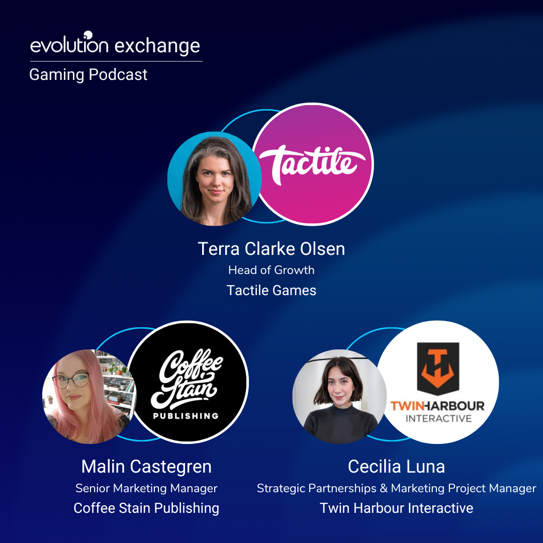 Today’s episode is hosted by Melanie Lindsey and they are joined on the podcast by Terra Clarke Olsen, Head of Growth at Tactile Games, Malin Castegren, Senior Marketing Manager at Coffee Stain Publishing and Cecilia Luna, Strategic Partnerships & Marketing Project Manager at Twin Harbour Interactive.